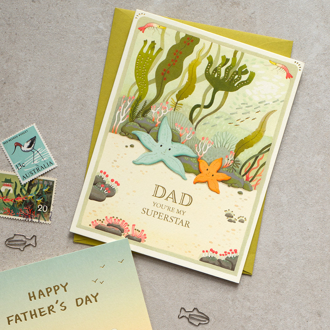 Size: Father's Day Starfish Greeting Card is 4 1/4 inches wide and 5 1/2 inches tall