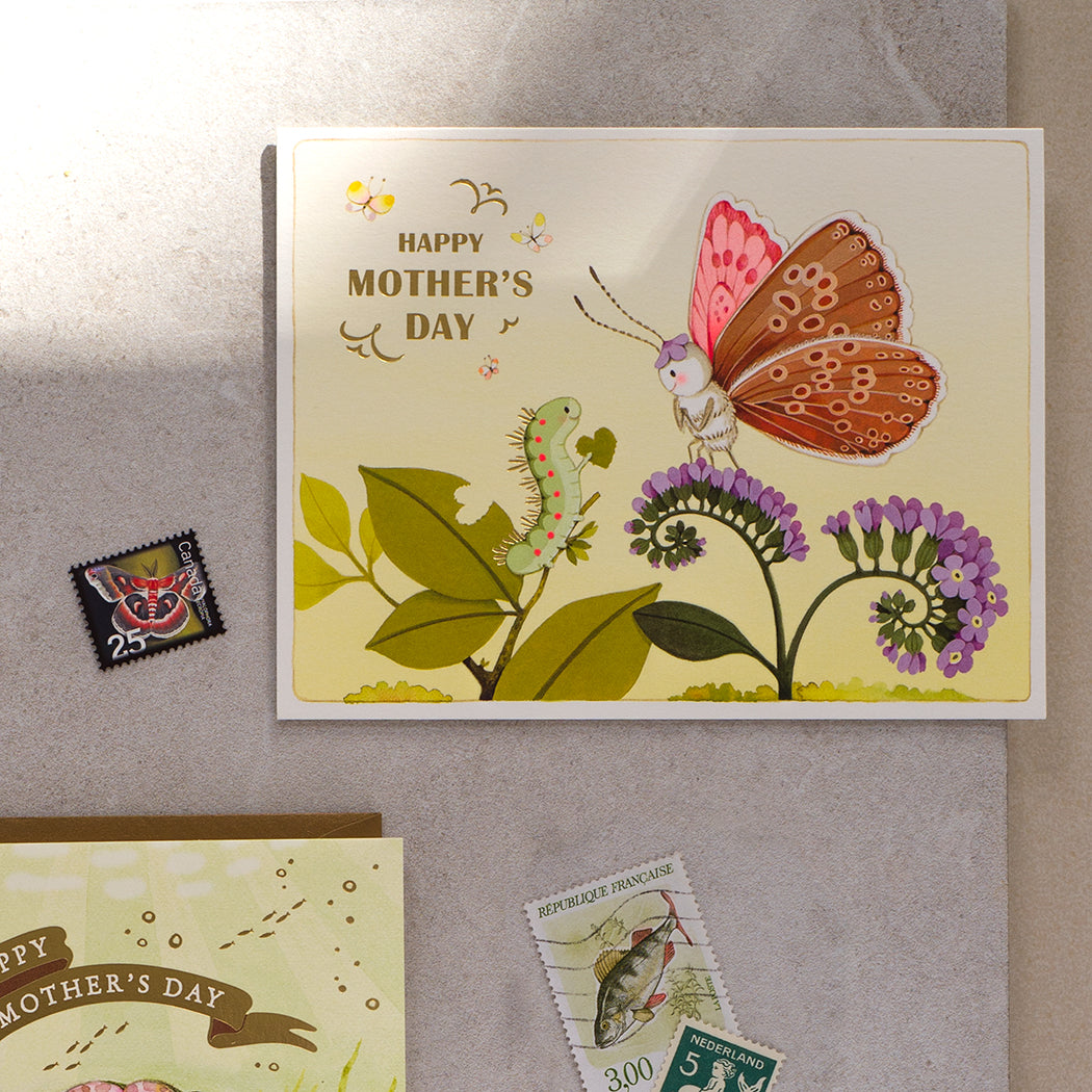 Size: Mother's Day Caterpillar Greeting Card is 5 1/2 inches wide and 4 1/4 inches tall