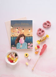 Size: Cotton Candy Birthday Greeting Card is 4 1/4 inches wide and 5 1/2 inches tall
