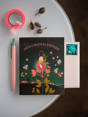 Size: Firefly Birthday Greeting Card is 4 1/4 inches wide and 5 1/2 inches tall