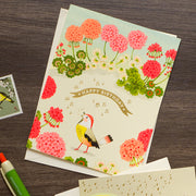 Size: Geranium and Bird Birthday Greeting Card is 4 1/4 inches wide and 5 1/2 inches tall