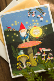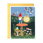 Size: Gnome Birthday Greeting Card is 4 1/4 inches wide and 5 1/2 inches tall