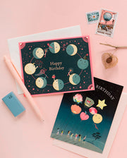 Size: Moon Phases Birthday Greeting Card is 4 1/4 inches wide and 5 1/2 inches tall