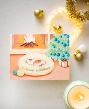 Size: Cat Warm Wishes Holiday Greeting Card is 5 1/2 inches wide and 4 1/4 inches tall