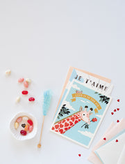 Size: Pink Giraffe Valentine Greeting Card is 4 1/4 inches wide and 5 1/2 inches tall