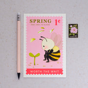 Size: Spring Seedling Dance Post Card is 4 inches wide and 6 inches tall