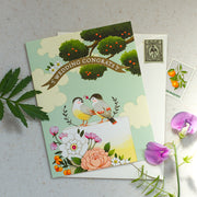 Size: Birds on Wedding Cake Greeting Card is 4 1/4 inches wide and 5 1/2 inches tall